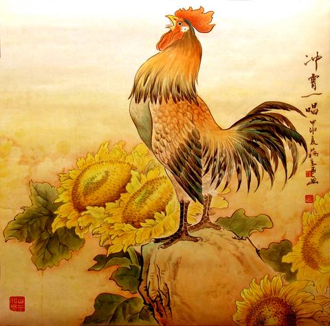 下聯:錦雞啼新春,來迎昴日星官。